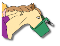 Le cheval mange des aliments riches (mélange complet de céréales).