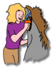 Commence le pansage du côté gauche et sur les parties hautes. Brosse la crinière, la queue et la tête.