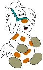 La robe est blanche avec des tâches de couleur Alezan, noires ou bai.